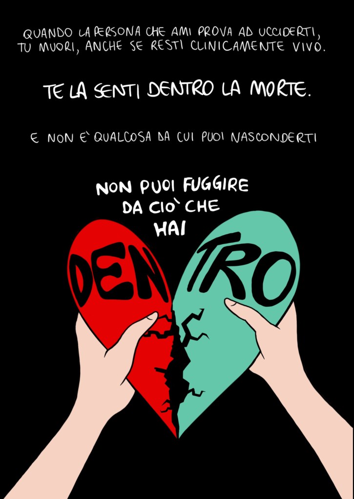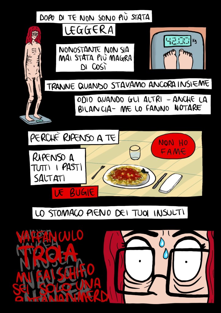 “Questo non è amore. L’amore non uccide” è un fumetto autobiografico, che già dal titolo vuole ribaltare la narrazione mainstream che viene fatta sulla violenza di genere.